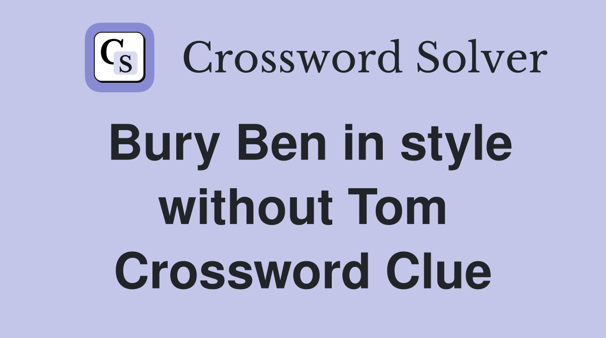 Bury Ben in style without Tom Crossword Clue Answers Crossword Solver