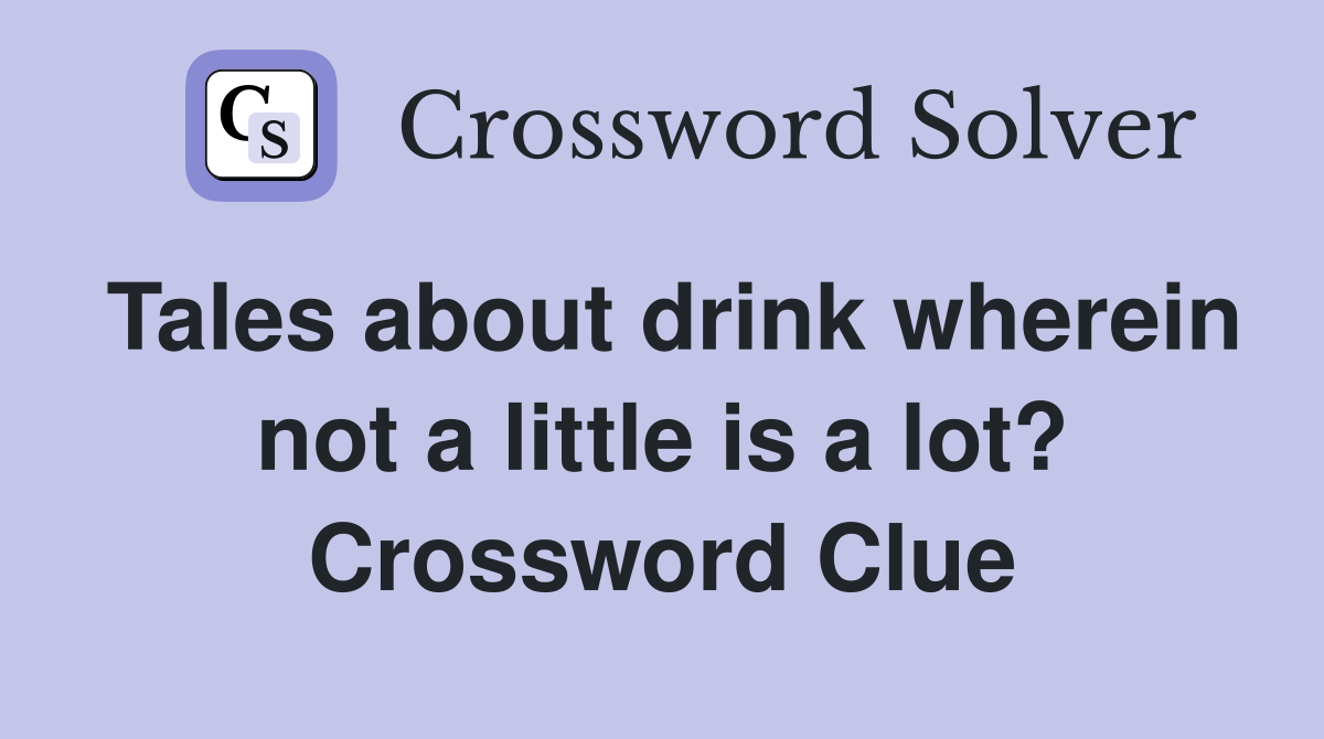Tales about drink wherein not a little is a lot? Crossword Clue