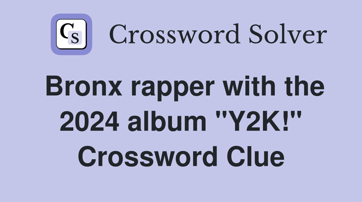 Bronx rapper with the 2024 album quot Y2K quot Crossword Clue Answers