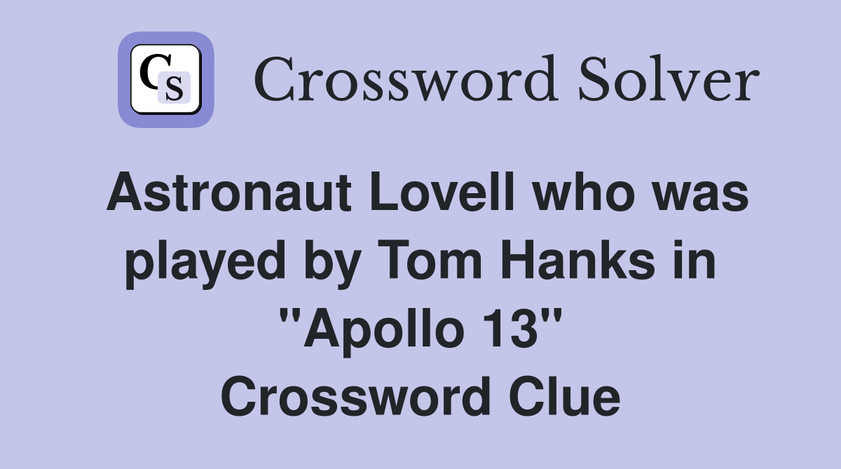 Astronaut Lovell who was played by Tom Hanks in quot Apollo 13 quot Crossword