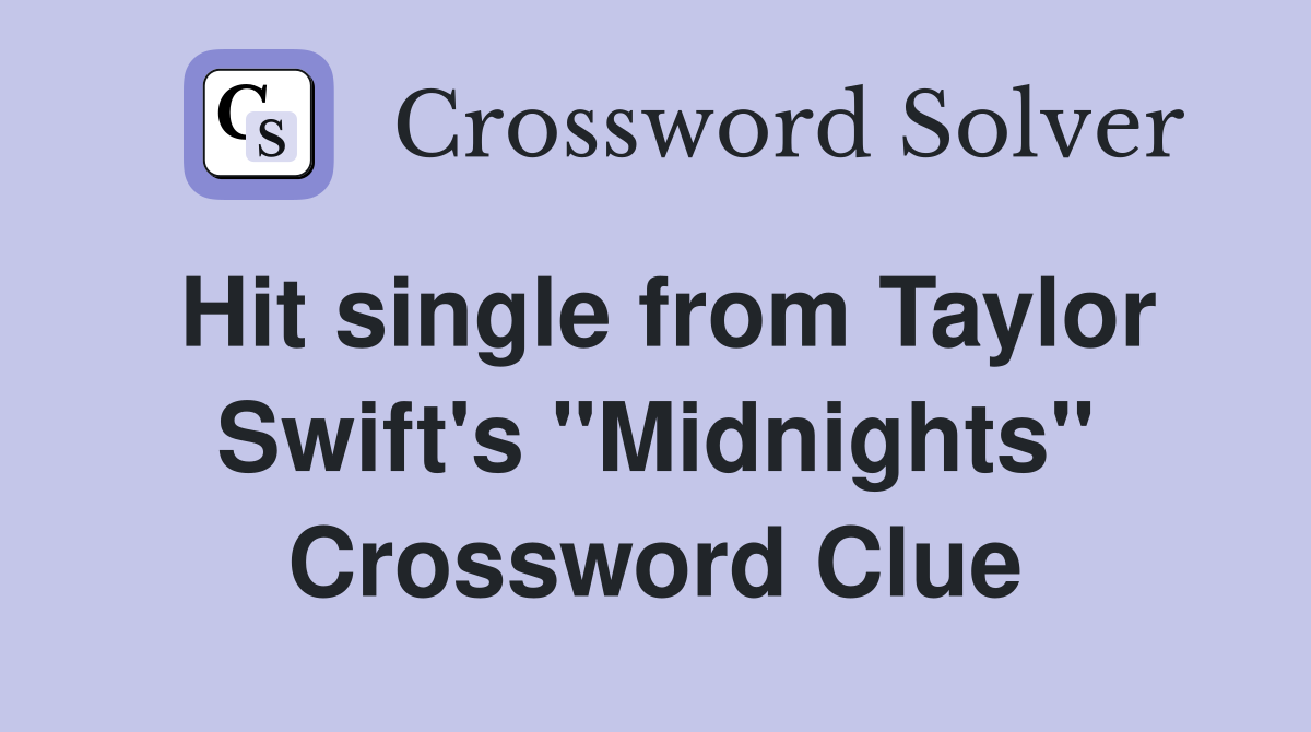 Hit single from Taylor Swift #39 s quot Midnights quot Crossword Clue Answers