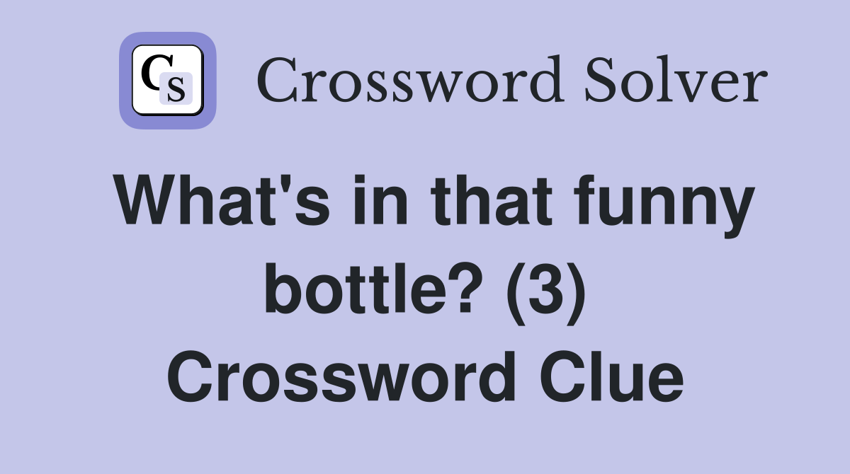 What #39 s in that funny bottle? (3) Crossword Clue Answers Crossword