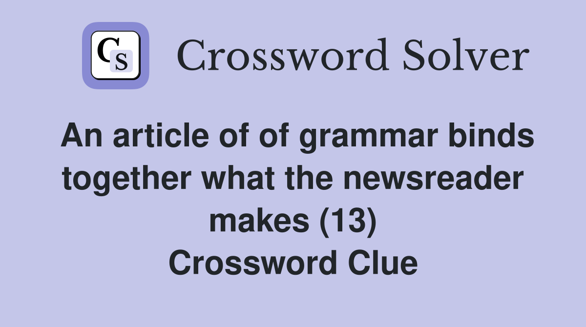 An article of of grammar binds together what the newsreader makes (13