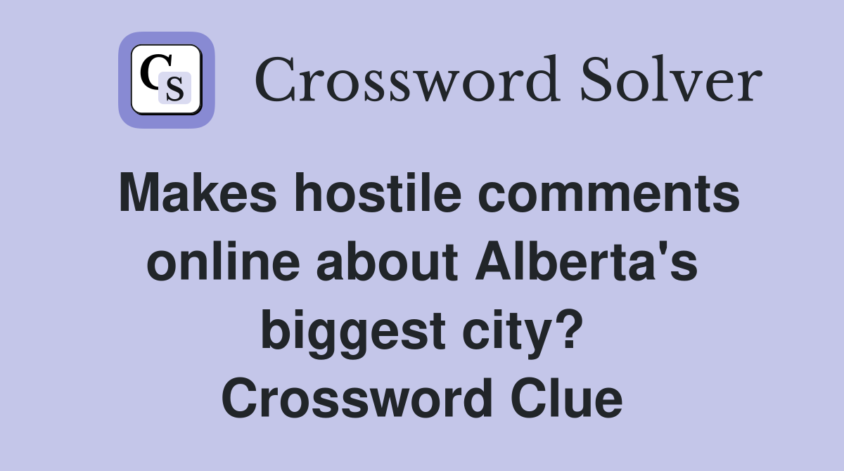 Makes hostile comments online about Alberta #39 s biggest city? Crossword