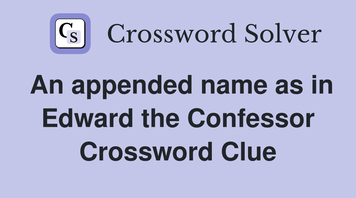 An appended name as in Edward the Confessor Crossword Clue Answers