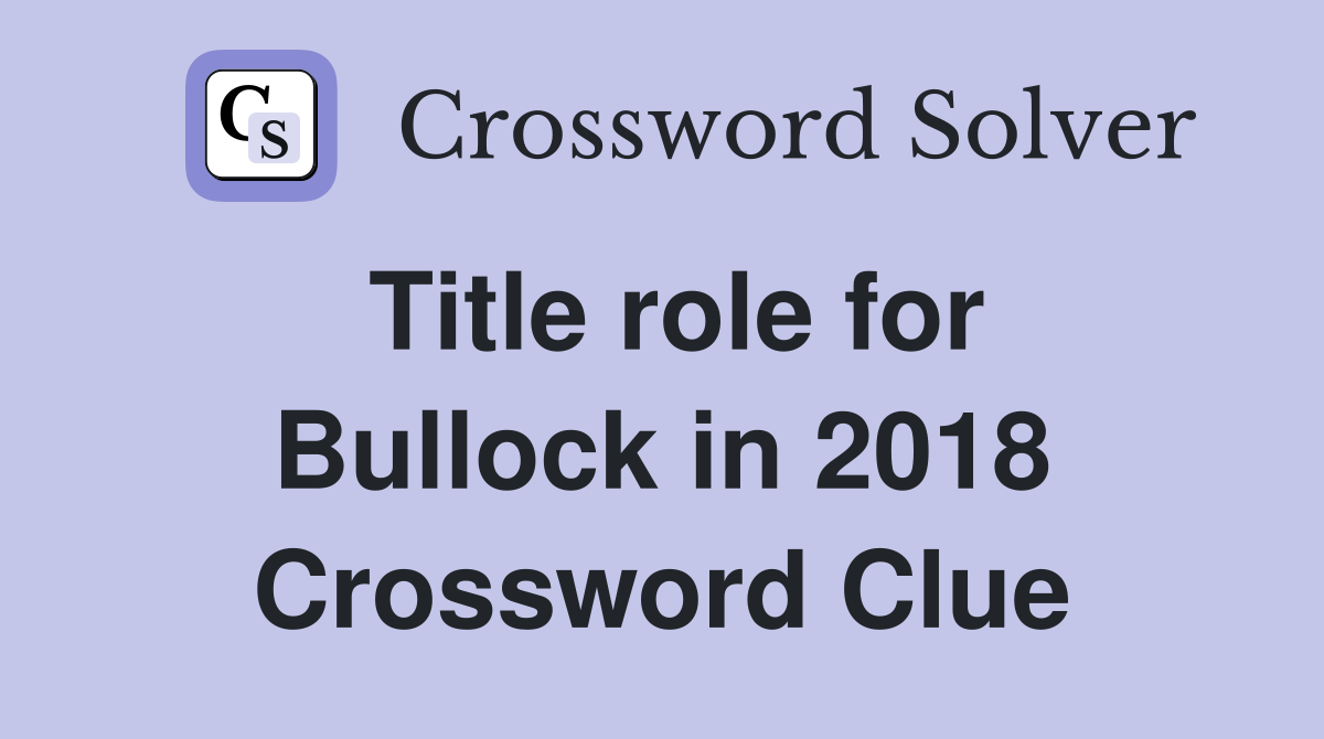 Title role for Bullock in 2018 Crossword Clue Answers Crossword Solver