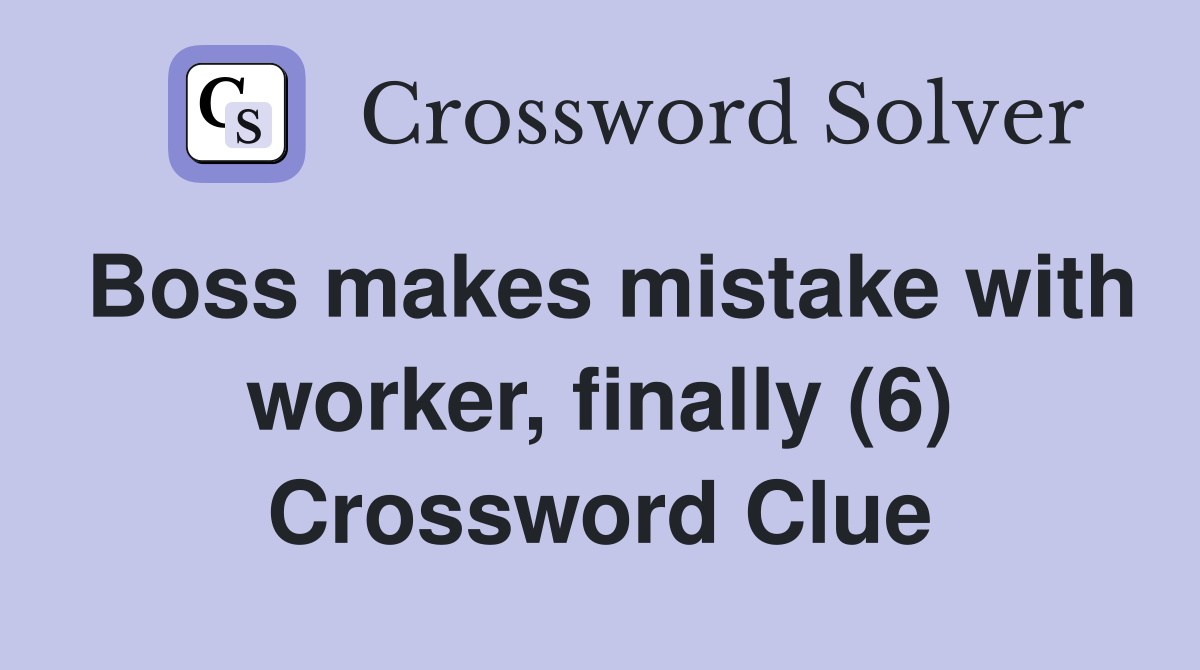 Boss makes mistake with worker finally (6) Crossword Clue Answers