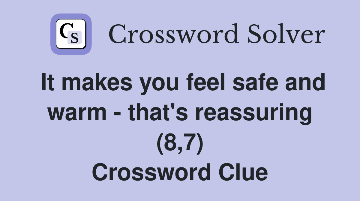 It makes you feel safe and warm that #39 s reassuring (8 7) Crossword