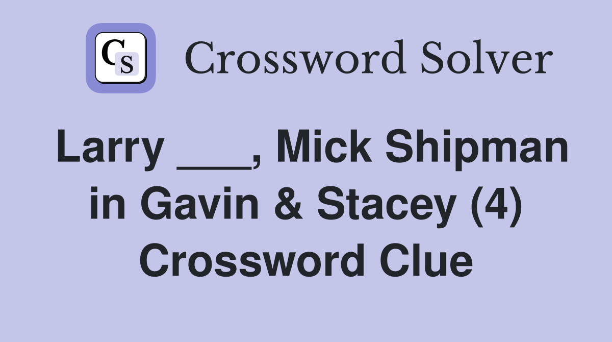Larry Mick Shipman in Gavin Stacey (4) Crossword Clue Answers