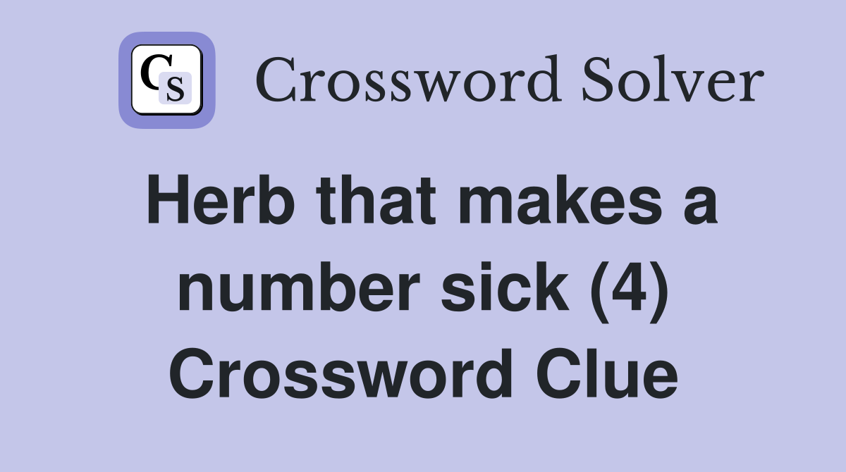 Herb that makes a number sick (4) Crossword Clue Answers Crossword