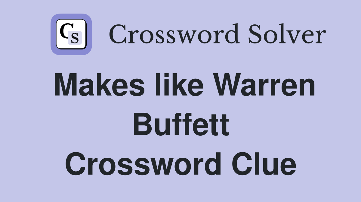 Makes like Warren Buffett Crossword Clue Answers Crossword Solver