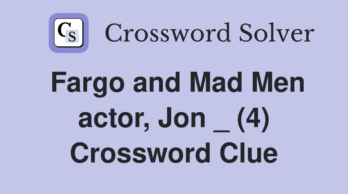 Fargo and Mad Men actor Jon (4) Crossword Clue Answers Crossword