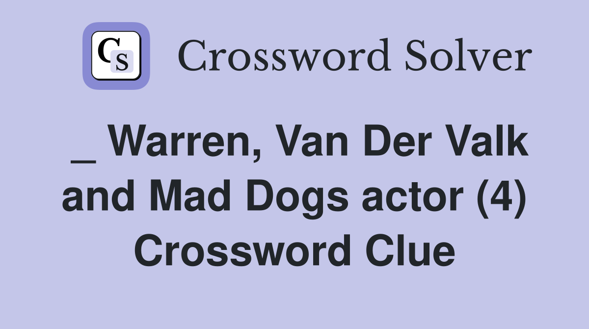 Warren Van Der Valk and Mad Dogs actor (4) Crossword Clue Answers