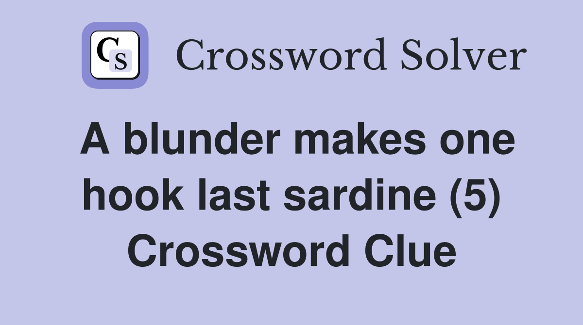 A blunder makes one hook last sardine (5) Crossword Clue Answers
