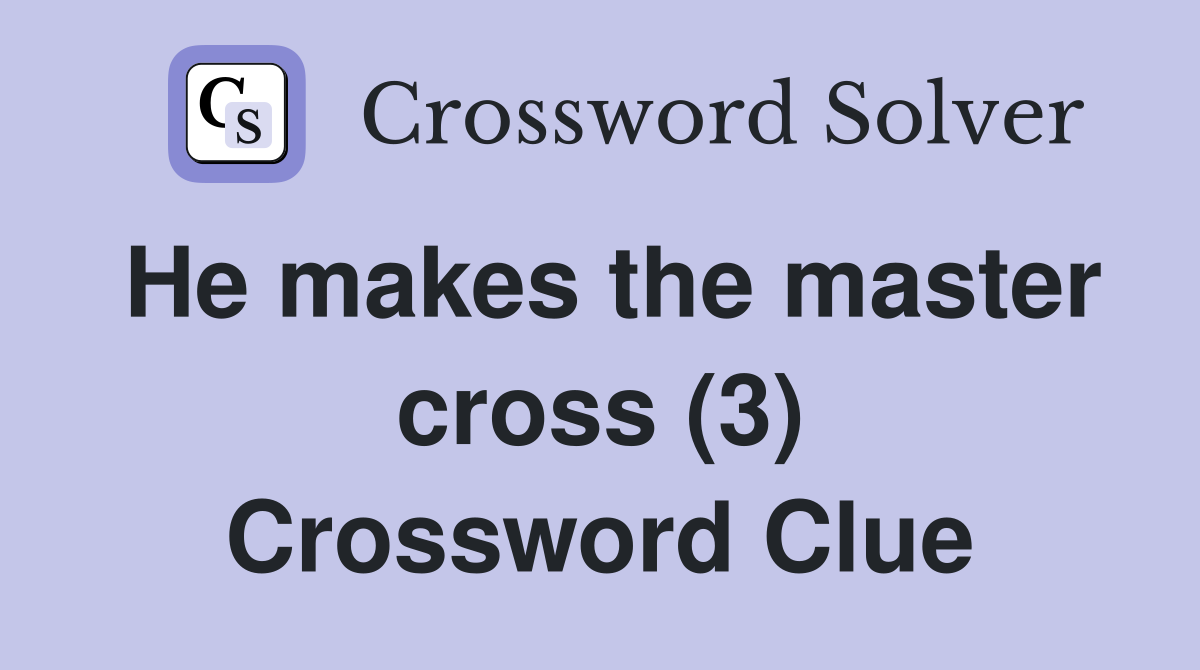 He makes the master cross (3) Crossword Clue Answers Crossword Solver