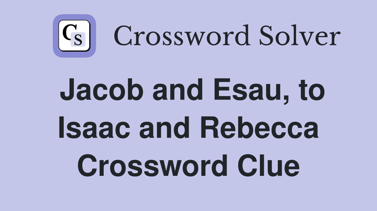 Jacob and Esau to Isaac and Rebecca Crossword Clue Answers