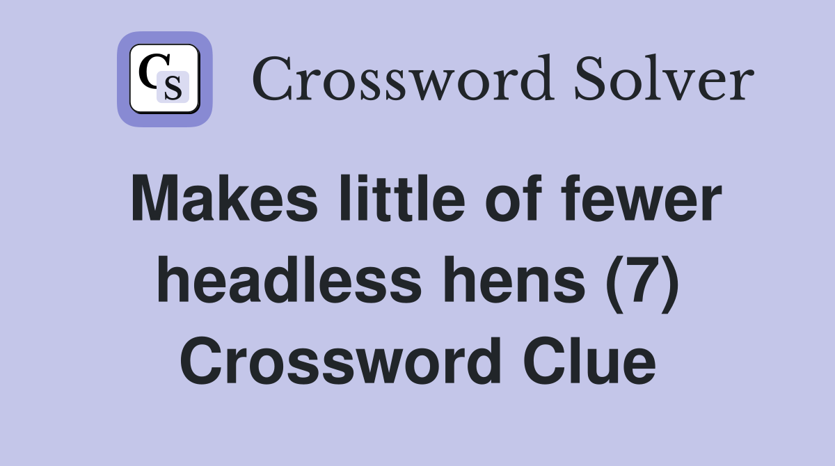 Makes little of fewer headless hens (7) Crossword Clue Answers