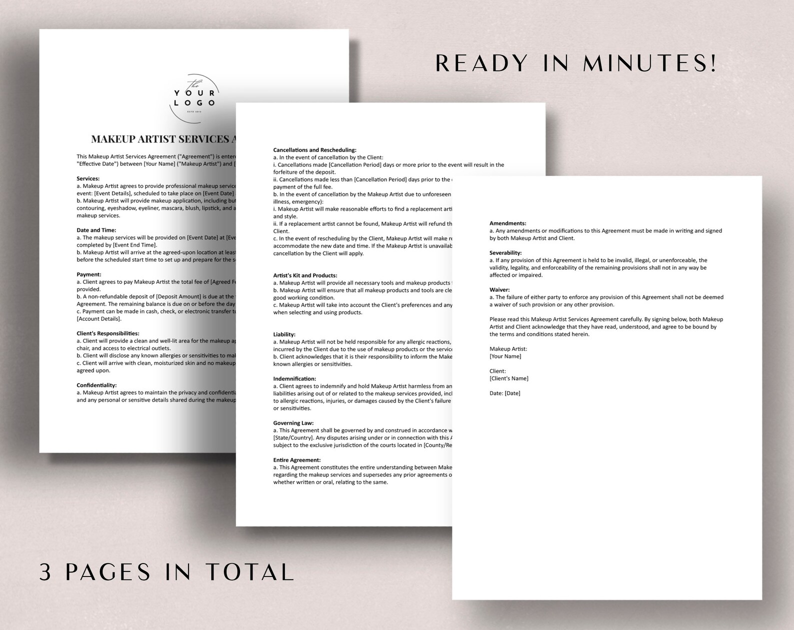 Makeup Artist Contract Editable Template MUA Agreement Makeup