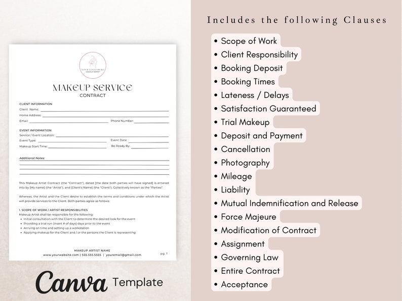 Makeup Artist Contract Template Edit in Canva Wedding Makeup