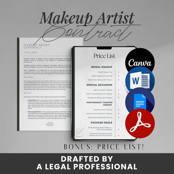 Makeup Service Contract Template MUA Contract Makeup Etsy