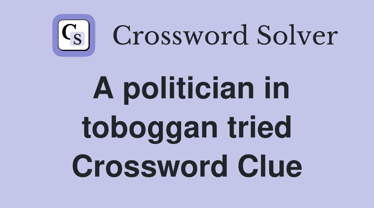 A politician in toboggan tried Crossword Clue Answers Crossword Solver