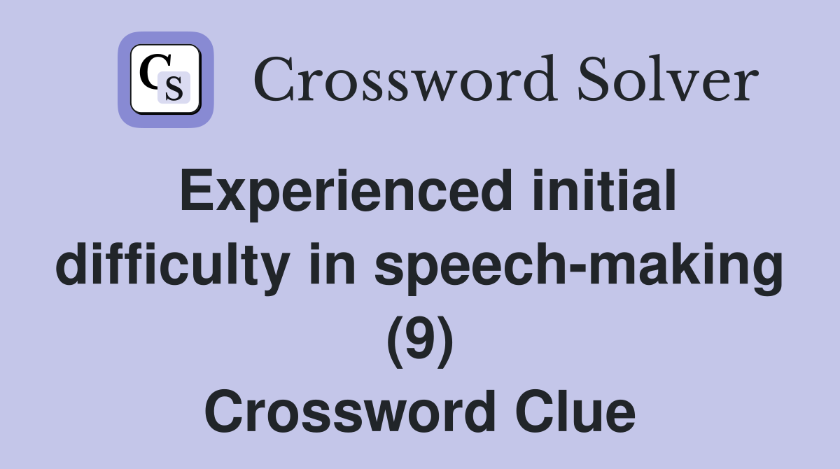 Experienced initial difficulty in speech making (9) Crossword Clue