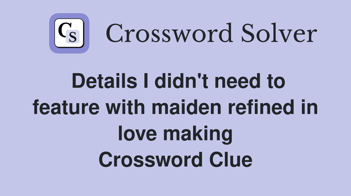 Details I didn #39 t need to feature with maiden refined in love making