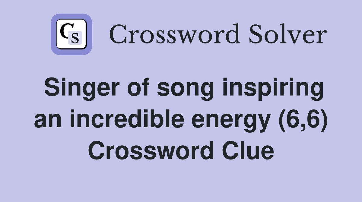 Singer of song inspiring an incredible energy (6 6) Crossword Clue