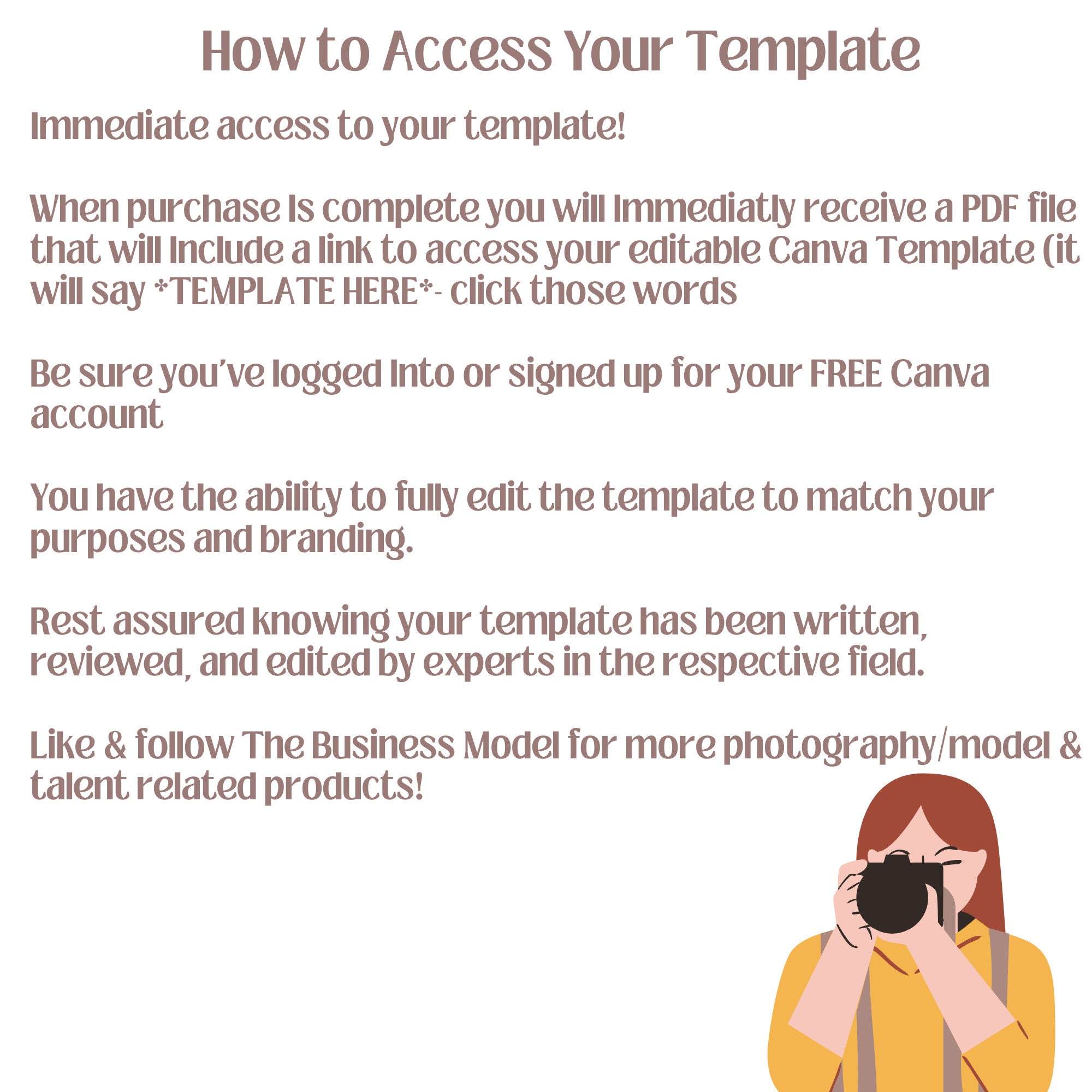 Model Comp Card Modeling Photo Card Canva Template Editable Fashion