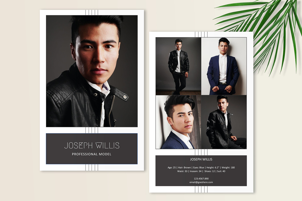 Male Model Comp Card Digital Template Modeling Resume Etsy