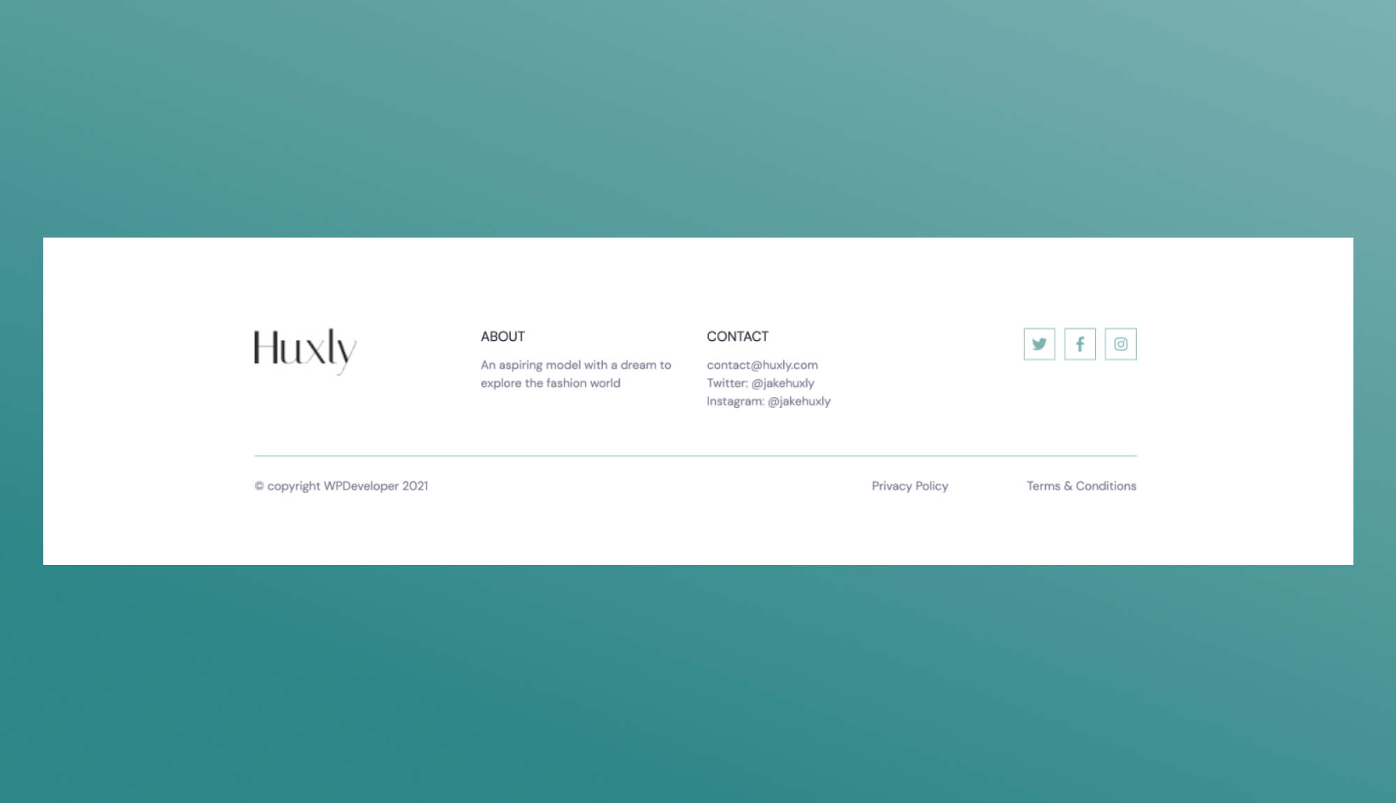 Huxly Gutenberg Male Model Portfolio Template Footer Section Templately