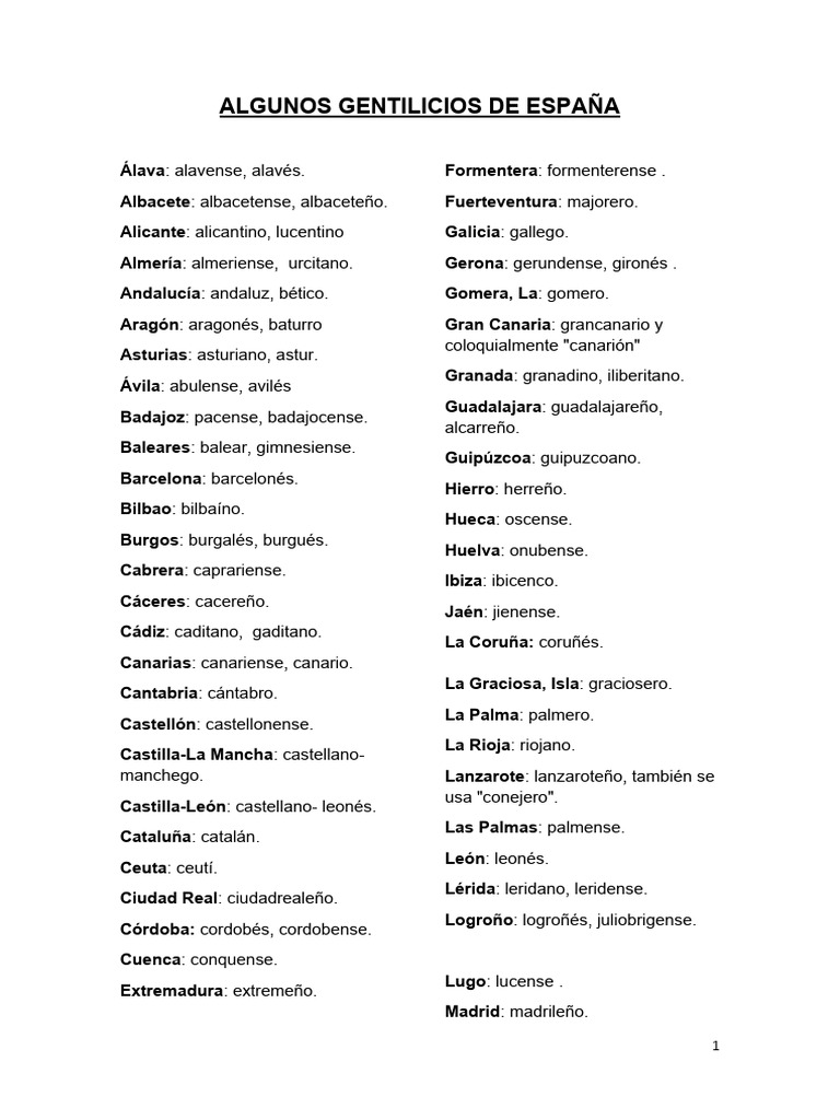 Algunos Gentilicios de España PDF Lenguas de Europa Lingüística