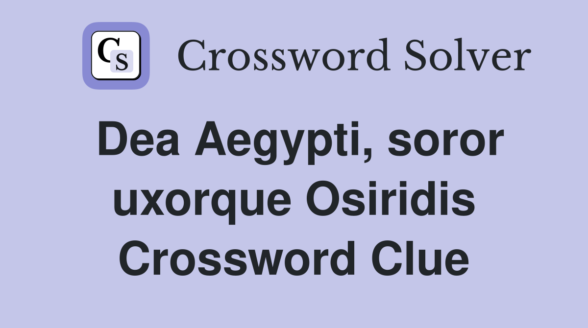 Dea Aegypti soror uxorque Osiridis Crossword Clue Answers
