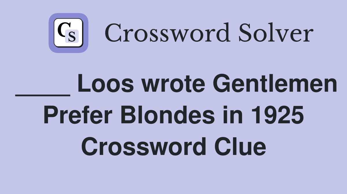 Loos wrote Gentlemen Prefer Blondes in 1925 Crossword Clue Answers