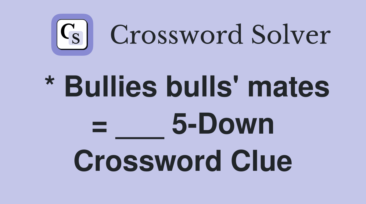 * Bullies bulls mates = 5 Down Crossword Clue Answers