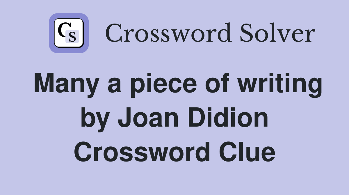 Many a piece of writing by Joan Didion Crossword Clue Answers