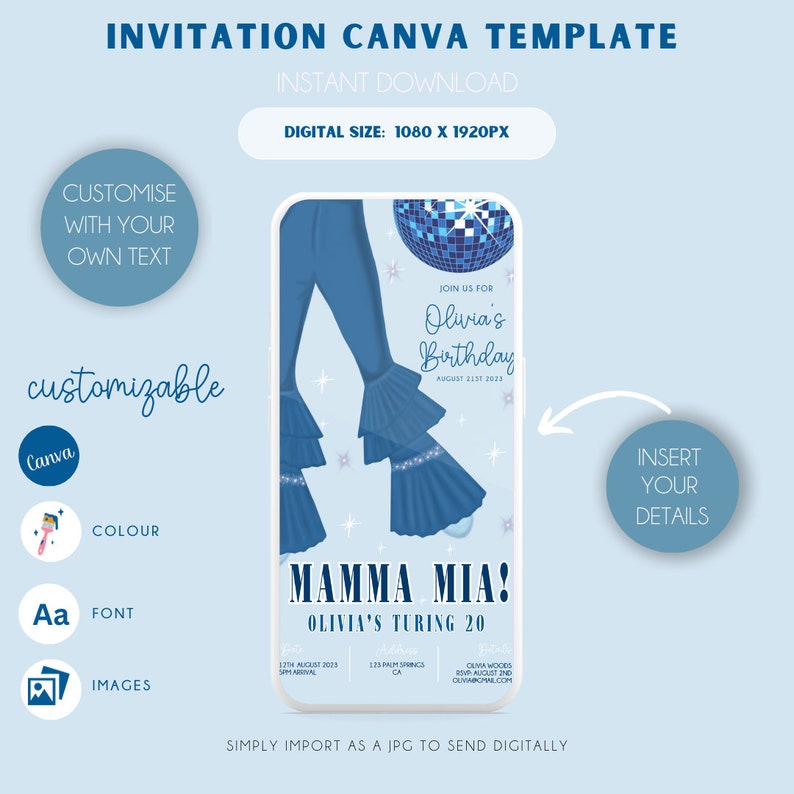Mamma Mia Birthday Invitation Mamma Mia Digital Invitation Mamma Mia