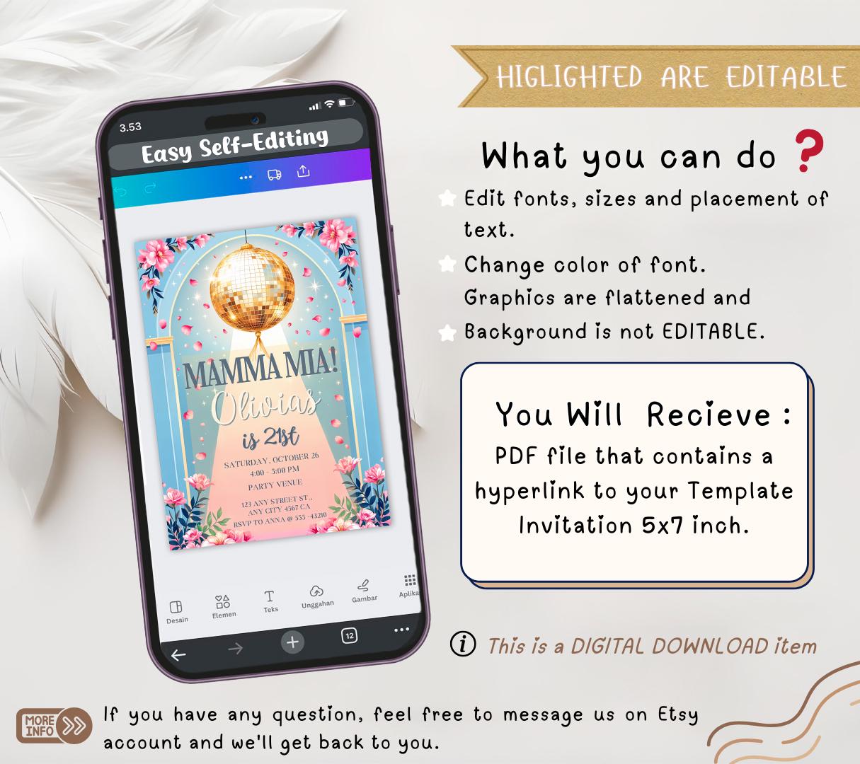 Mamma Mia Birthday Invitation Template Etsy