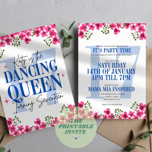 Dancing Queen 17 Mamma Mia 17th Birthday Party Invitation Etsy
