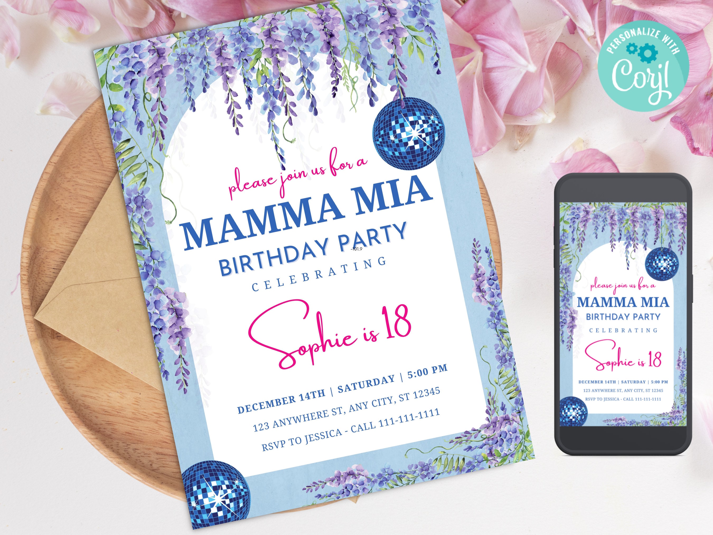 Mamma mia birthday party invitation template canva Artofit