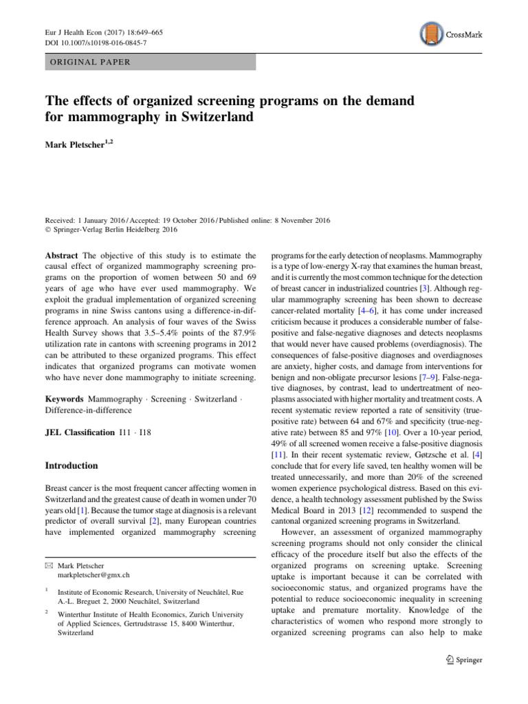 The Effects of Organized Screening Programs On The Demand PDF