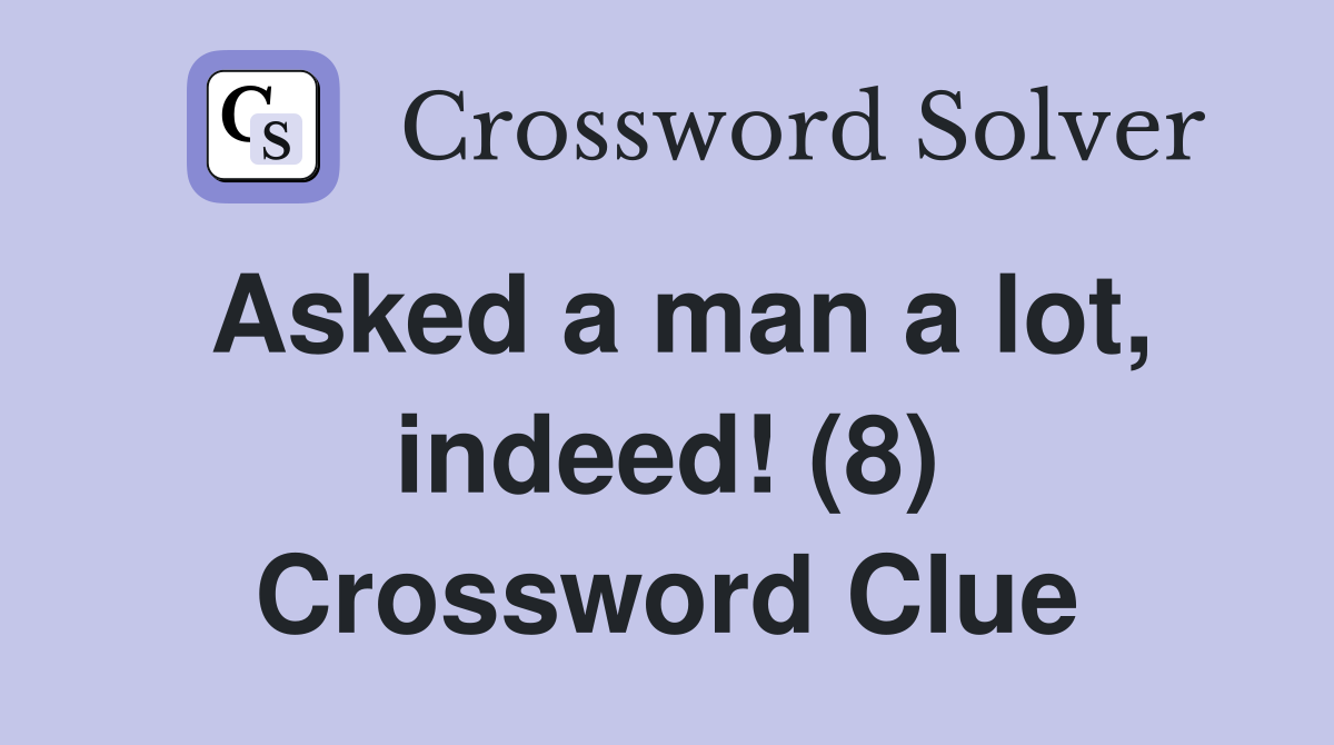 Asked a man a lot indeed (8) Crossword Clue Answers Crossword Solver