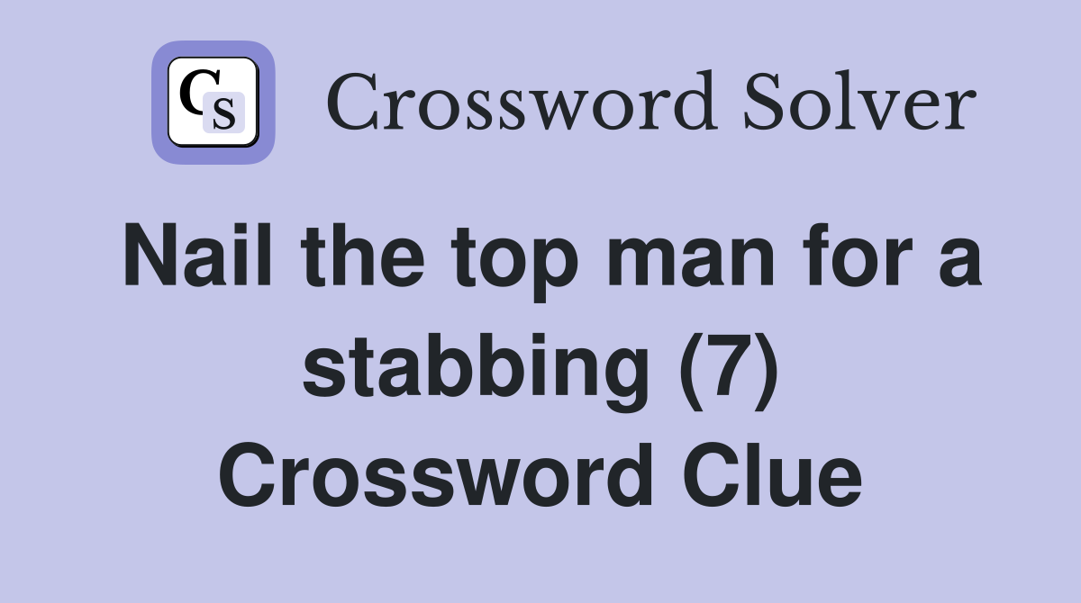 Nail the top man for a stabbing (7) Crossword Clue Answers