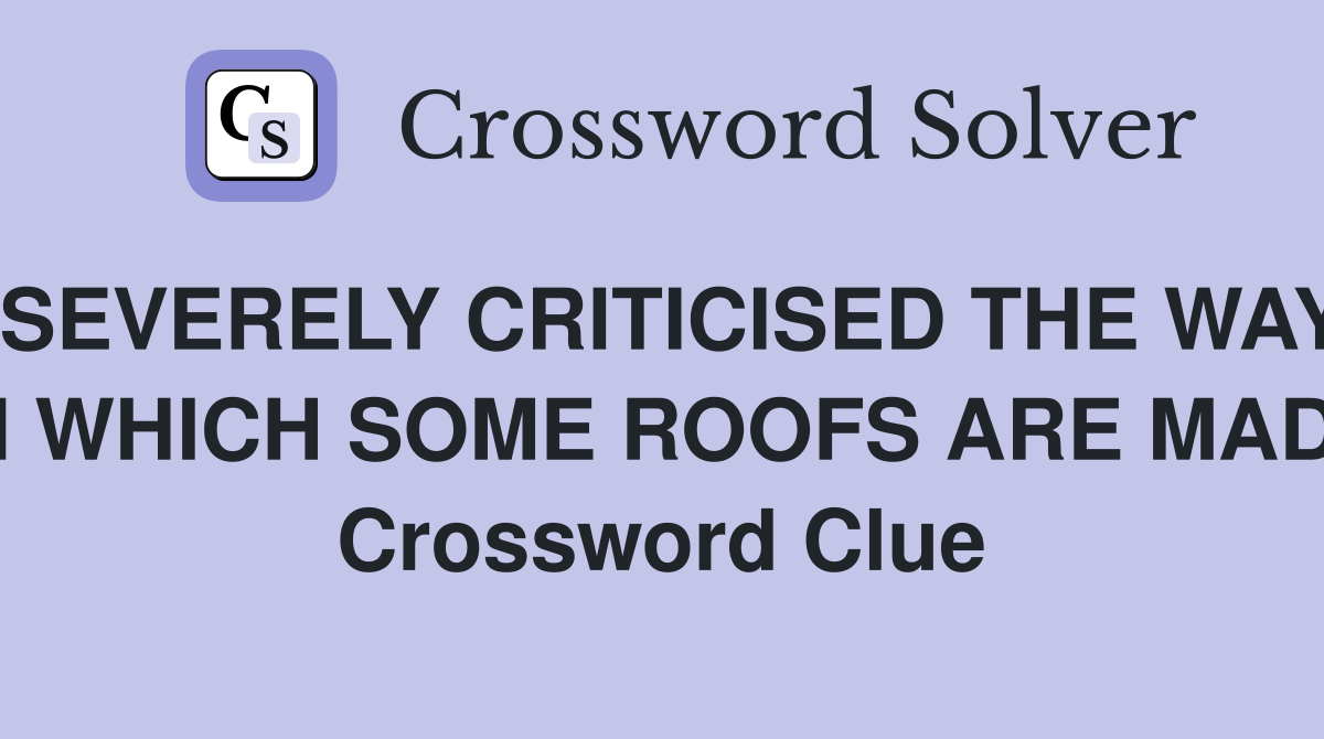 SEVERELY CRITICISED THE WAY IN WHICH SOME ROOFS ARE MADE Crossword