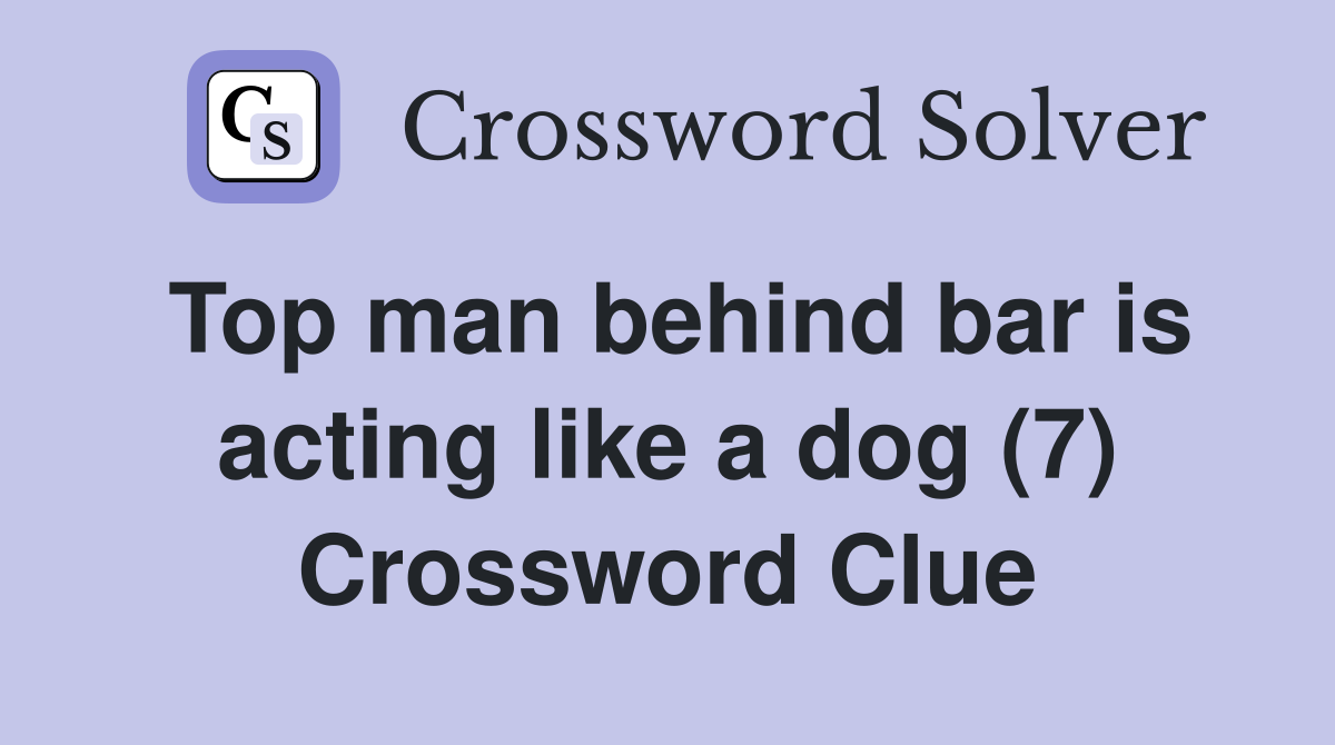 Top man behind bar is acting like a dog (7) Crossword Clue Answers