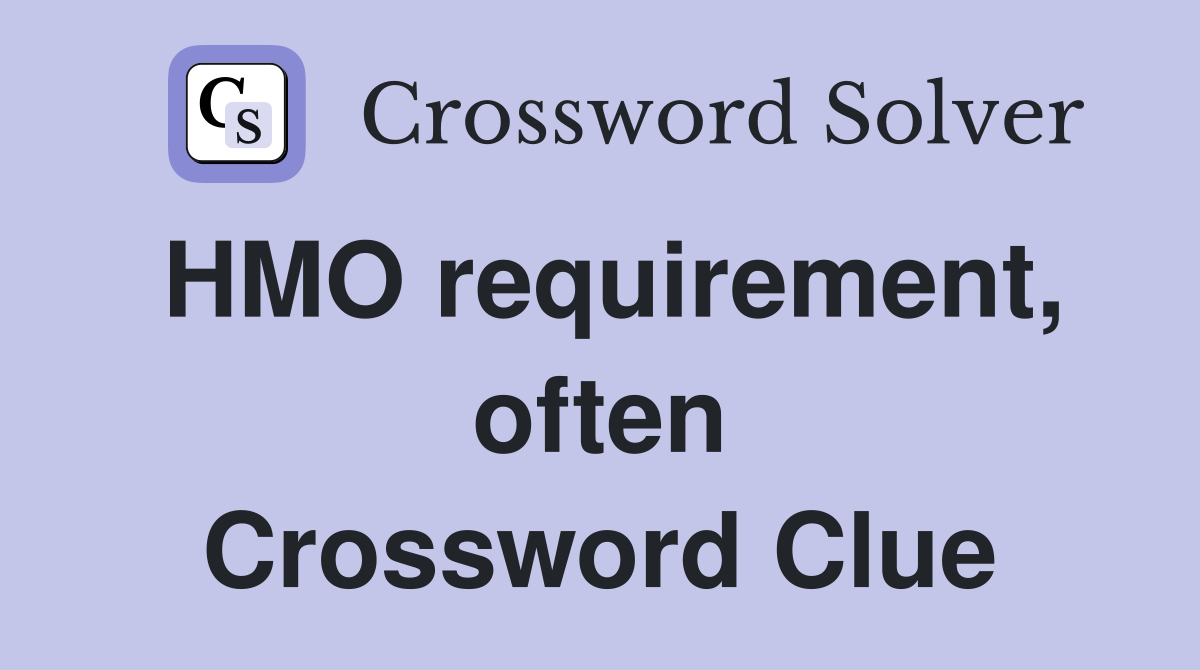 HMO requirement often Crossword Clue Answers Crossword Solver