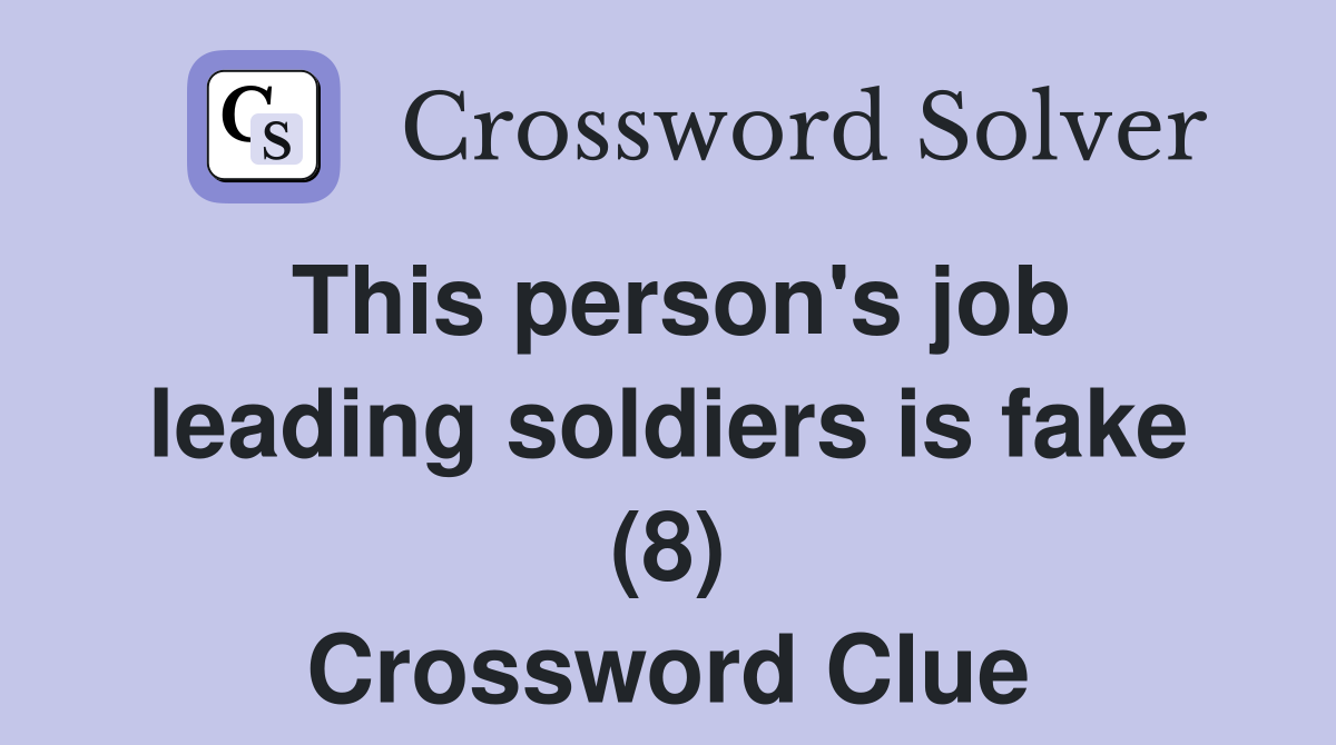 This person #39 s job leading soldiers is fake (8) Crossword Clue Answers