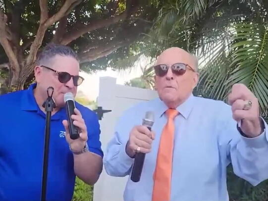 Rudy Giuliani sings New York New York at birthday party before being