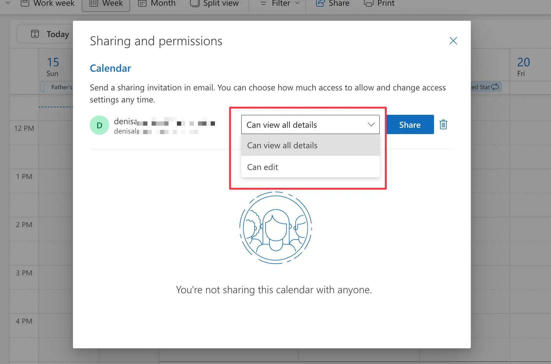 How to manage Outlook Calendar sharing permissions? Flo