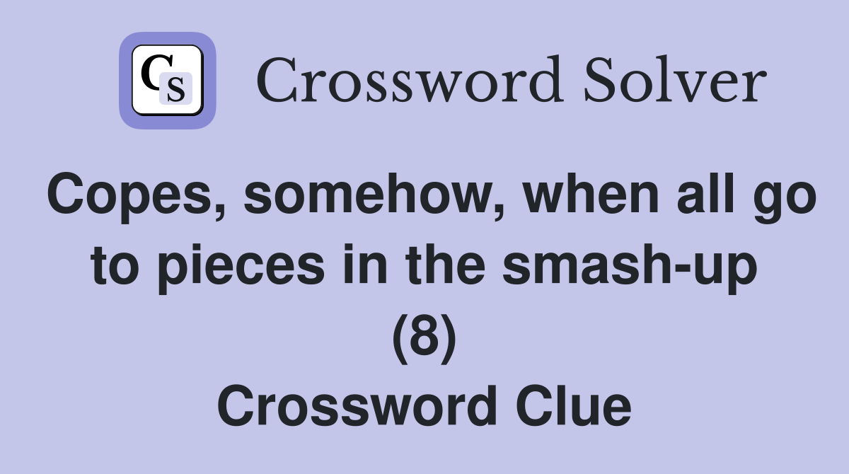 Copes somehow when all go to pieces in the smash up (8) Crossword